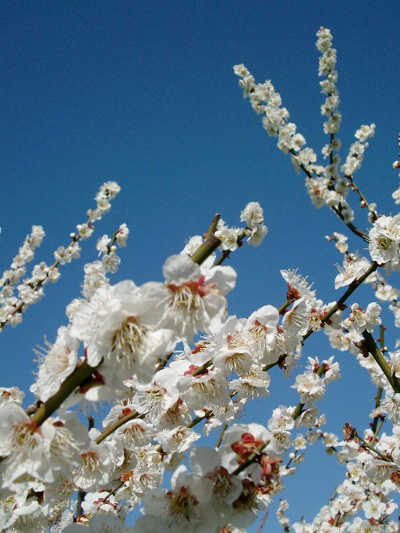 お天気にも恵まれ、真っ青な空。車から降りた瞬間に、梅の香りが漂います。