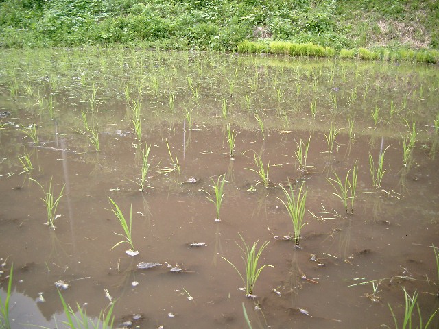 だから正確には雑草予防かな。でも既に稲と見紛うばかりの雑草(たぶんヒエ)があちらこちらに生えてきました。恐るべし雑草の生命力です。