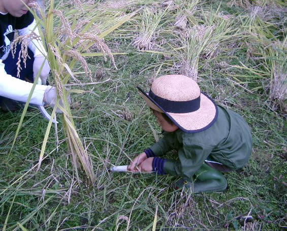 稲刈りは小さいお子さんを含め、のべ14名で行いました。