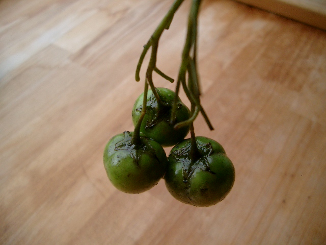 ジャガイモもトマトも、実っている様子を当たり前のように見ている私にとっては驚くようなコメントですが、トマトの実が生っている姿を見る機会がない方は、そういう感想になるんですね。