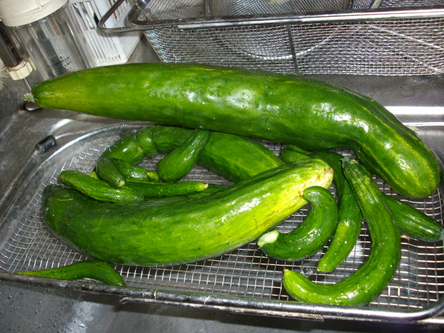 例によって1週間に一度の収穫なので、一部はジャンボキュウリに育っています。