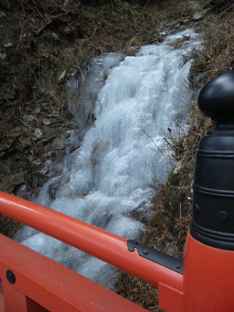 雪は積もっていませんでしたが、滝は凍ってました。