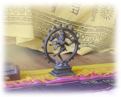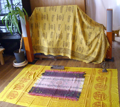 先生が「インドの敷布」を床に敷いたら、たちまち、そこは神秘的な空間。