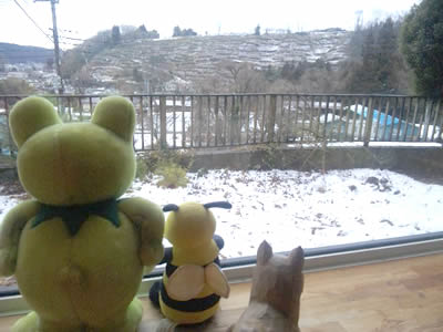今朝、冷たい雨の東京から週末田舎暮し拠点入りしたら、うっすら雪化粧でした。